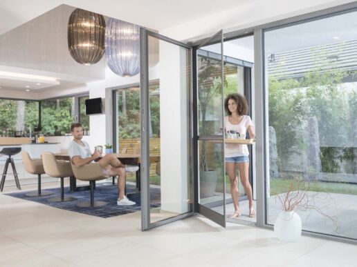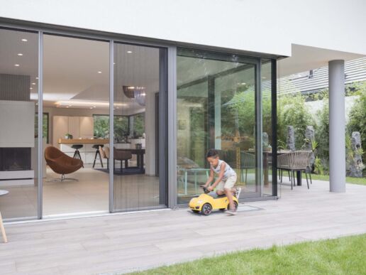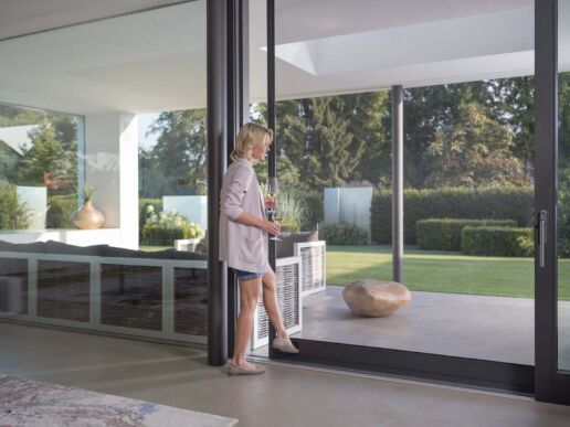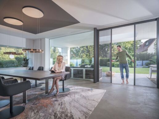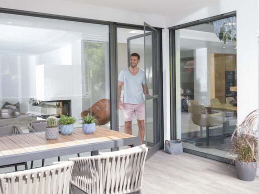 Clement Schiebetüren mit angenehm gestalteten Profilkonturen und hochtransparentem Gewebe sind ein echter Hingucker – sofern Ihre Gäste den Insektenschutz überhaupt bemerken. Laufruhe, Leichtgängigkeit und eine intuitive Bedienung zeichnen unsere Schiebesysteme aus. Mit der integrierten Griffnut kann der Flügel in jeder Angriffshöhe geöffnet werden, dies ist auch ideal für Kinder.
